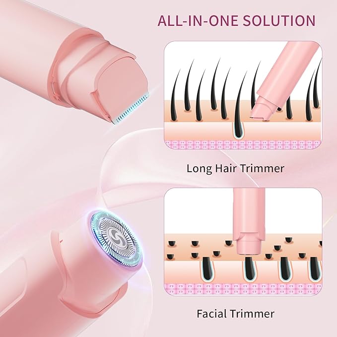 2-in-1 design: Akunbem women's electric shaver double-head design integrates both body hair trimmer and facial hair trimmer.