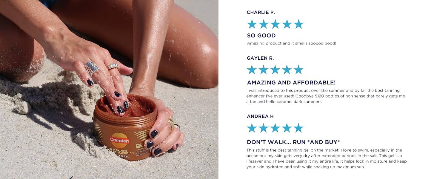• Easy Application: Silky, easy-to-apply formula spreads evenly for a streak-free finish unlike tanning lotions. Perfect for a deep golden shimmering tan. Apply SPF prior to Carroten for UV protection.
