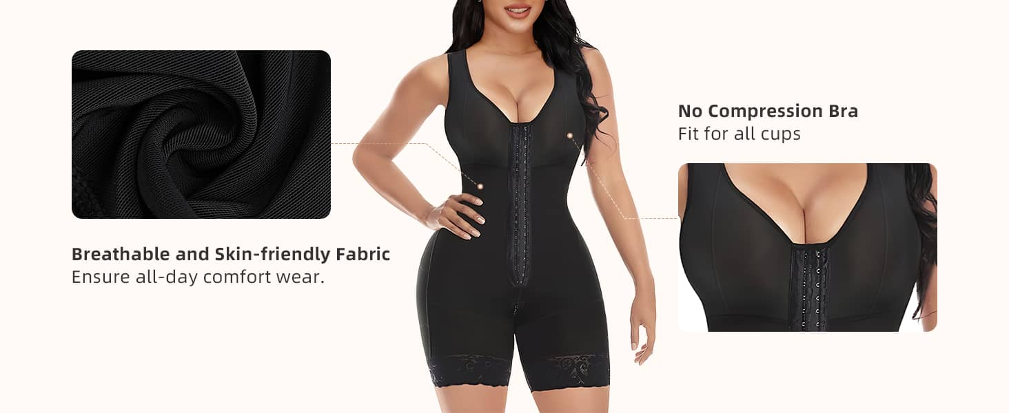 • COMFORTABLE WIRELESS BREAST LIFT DESIGN - Our Full Shapewear adopts wireless chest support design, so you won't feel tight when wearing. Fajas colombianas moldeadoras can give your chest a full coverage, make them gather together and shaped, provide both comfort and charming curves at the same time. Due to its high elastic fabric, this body shaper is suitable for most people's chest shape.