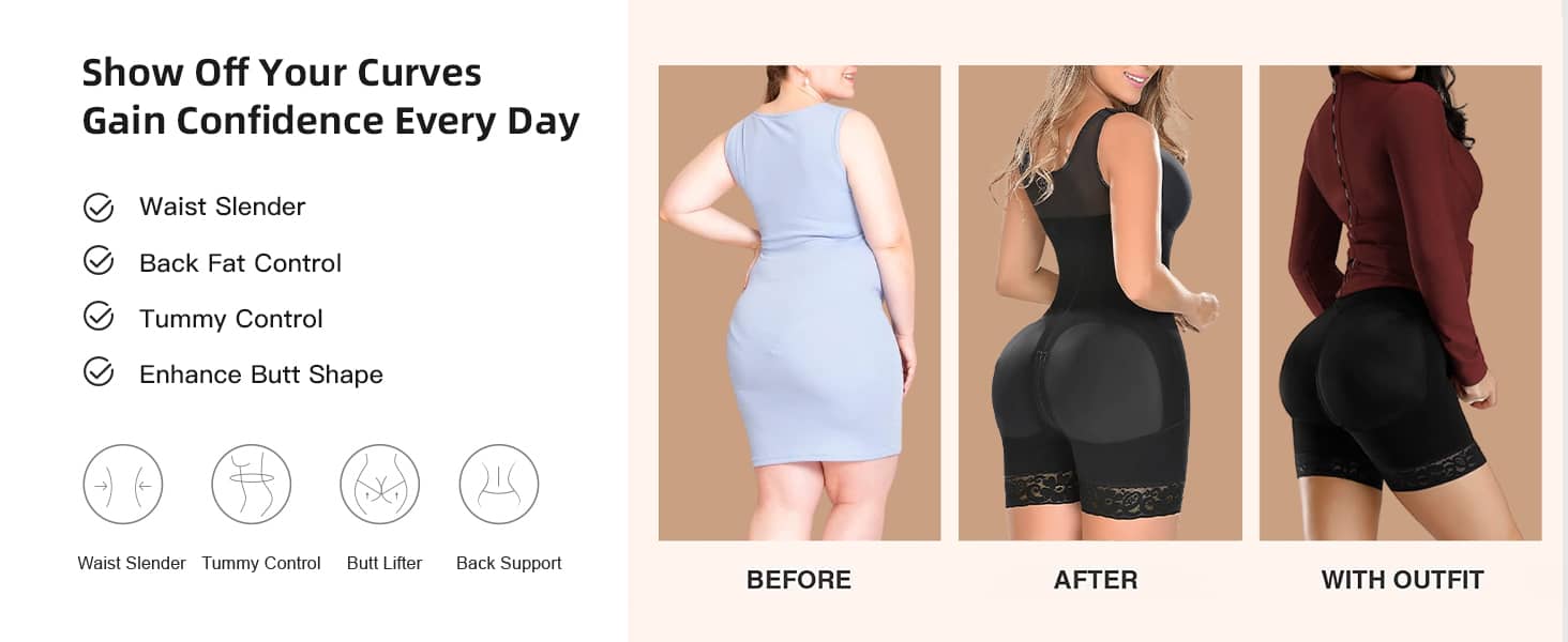 • BUTT LIFT & OPEN CROTCH - The crotch of this faja shapewear for women adopts a zipper opening and closing design, allows you easy access to the toilet without taking off the entire faja colombiana. Lace design at bottom legs can prevent rolling up. Wear this butt lifting shapewear to look even better in your favorite outfits. Charming butt lift can make you enjoy your beautiful curve at anytime.