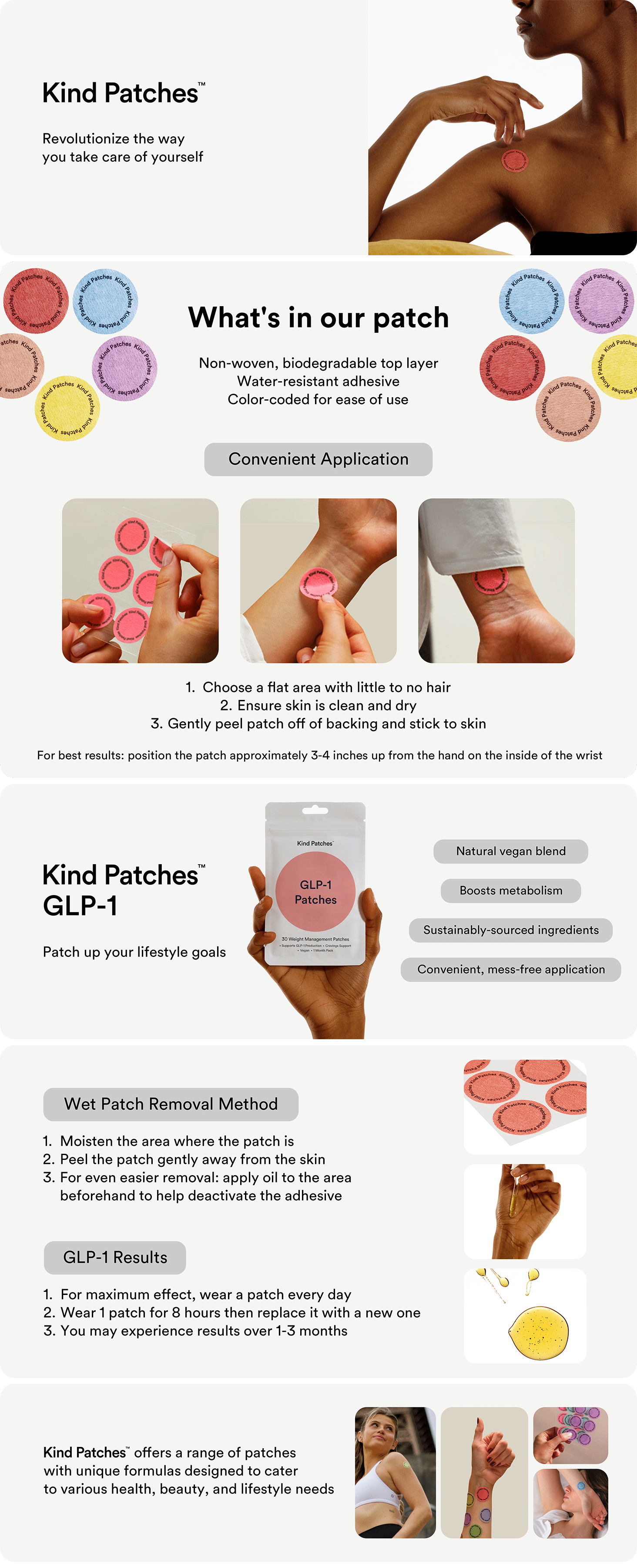 • Plant-Based Wellness: Experience the benefits of our vegan GLP-1 patches, designed with botanical extracts to complement your active lifestyle.