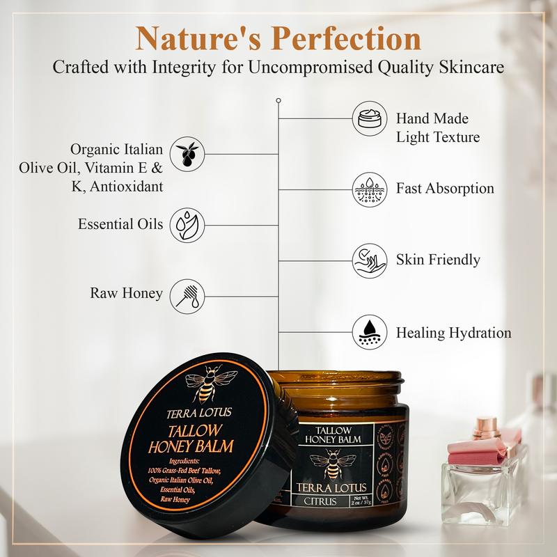 - Say good-bye to chemical filled moisturizers, and sayhello to nature's intended skincare. We make every batchof our Honey Tallow Balm with the highest quality GrassFed Beef Tallow, Olive Oil, and Raw Honey. Through ameticulous rendering and clarifying process, we producea pure white tallow for our balms, ensuring the higheststandard of excellence in every jar.