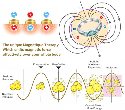 The majority of magnetic items either use magnets that only partially penetrate the magnetic field or use like poles that repel one another, leaving a dead zone between the magnets. Alternating North-South Polarity Orientation is used by Magnetology Moissanite Diamond Ring to maximize magnetic field flow and discharge electromagnetic charge, which helps to clear obstructions from the body and reestablish a normal energy flow.
