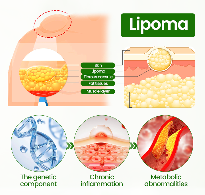 As lipomas grow. they can compress surrounding veins and disrupt blood flow. This formula helps relax tissue tension and support healthy circulation. relieving discomfort caused by restricted flow or localized pressure.