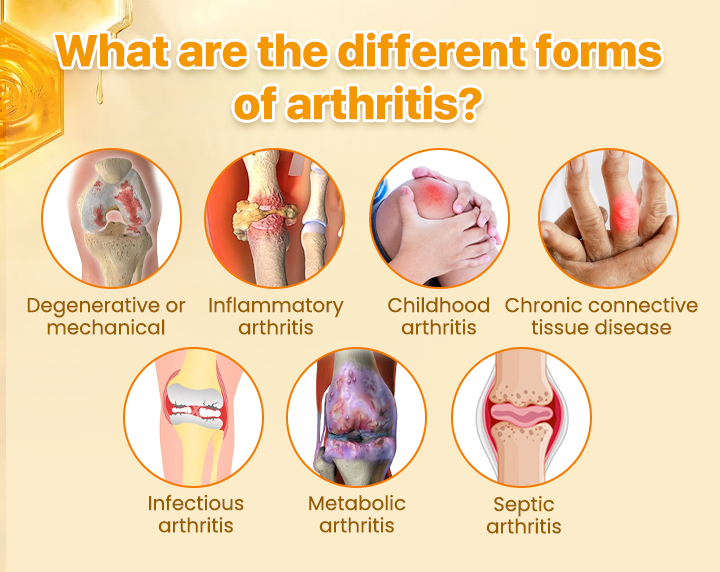 Arthritis involves inflammatory diseases affecting joints and surrounding tissues, caused by factors like inflammation, infection, degeneration, or trauma. It includes various types and manifests as joint redness, swelling, heat, pain, dysfunction, and deformity, potentially leading to disability and impacting patients' quality of life.