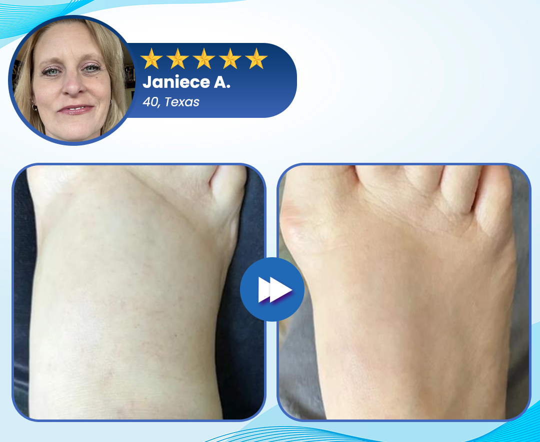 "I have an advanced gout which causes severe swelling, intense pain and stiffness in my foot, which makes walking difficult. Surgery seemed like the only option, but the cost pushed me to explore alternatives. My orthopedic surgeon recommended Timilk® EnduraHeal Magnesium Pain Relief Cream, and I’m so glad I tried it. Within a week, the swelling started to decrease, and my feet became more flexible. After two months of use, my feet fully recovered—an incredible relief! I’ll keep using it to ensure the gout doesn’t return. Highly recommended!" - Janiece A., 40, Texas