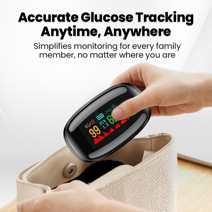 The QIAWI® SugarSense High-Precision Glucose Monitoring Device utilizes advanced non-invasive technology to measure blood glucose, heart rate, and blood oxygen levels without painful finger pricks. Insert your finger into the device, press a button, and receive accurate results within 5-8 seconds.