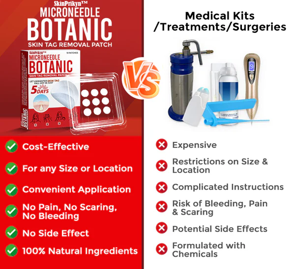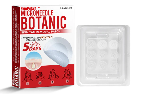 The SkinPrikyn™ MicroNeedle Botanic Skin Tag Removal Patch is an organic micro-needle patch that delivers botanical ingredients deep into the skin to remove skin tags, moles, and warts. Just one application can cause unwanted skin tags to fall off within five days, making it an effective treatment. It is highly recommended by pharmacists and dermatologists worldwide for its safety, reliability, and non-prescription convenience.