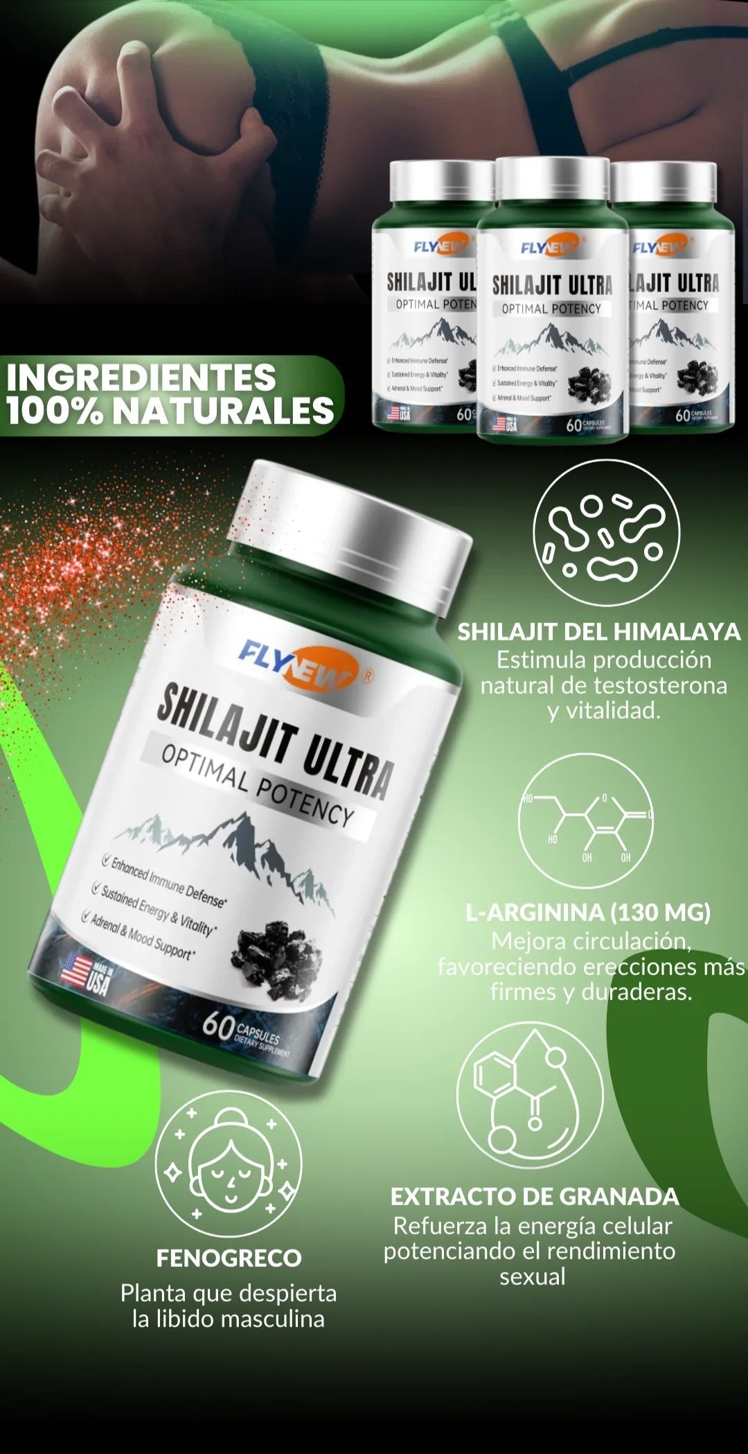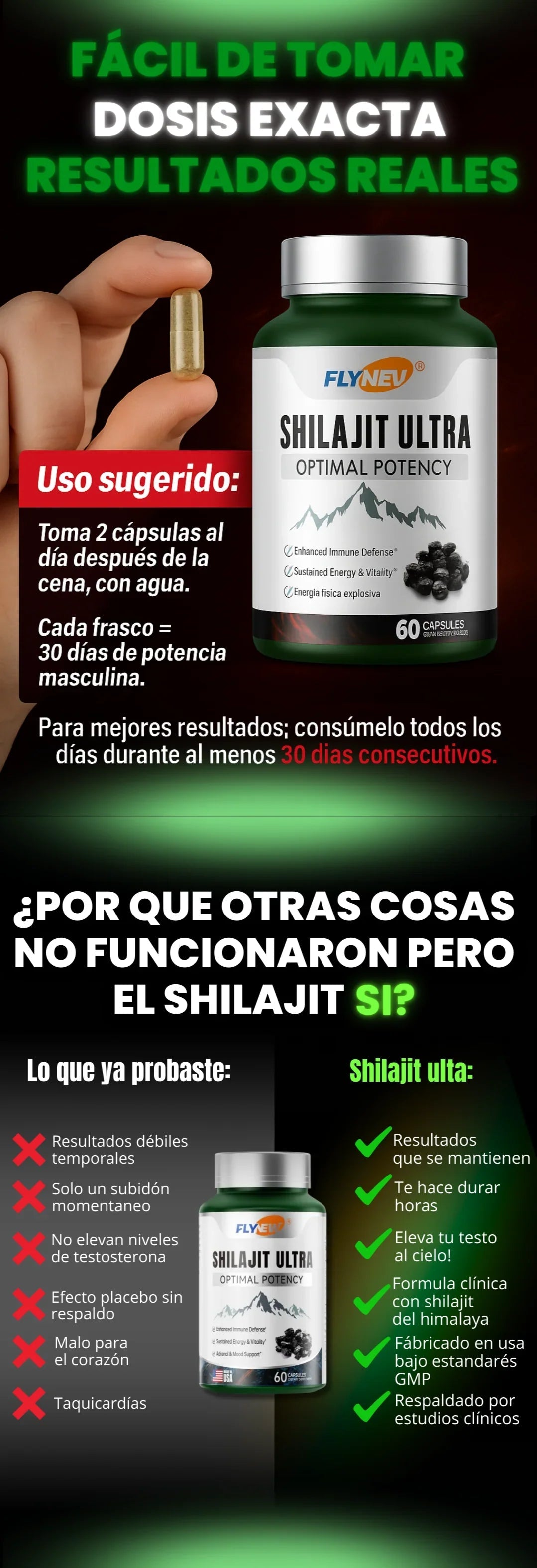 Gracias a su alto contenido de ácido fúlvico y minerales esenciales, este suplemento mantiene tus niveles de energía y testosterona equilibrados, para que disfrutes de una vida sexual plena y un cuerpo más fuerte y activo.
