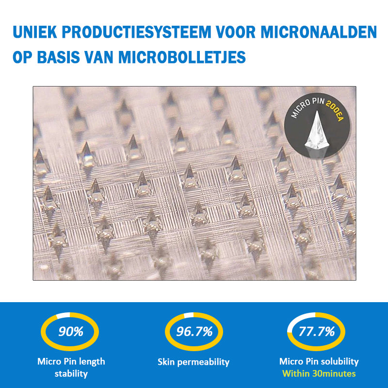 Each needle is 0.27mm long, just 1/7th the thickness of a hair, and is made from dissolvable medication. These micro-needles are precision-engineered using cutting-edge manufacturing techniques to ensure a seamless, pain-free experience while effectively delivering the active ingredients directly into the skin.