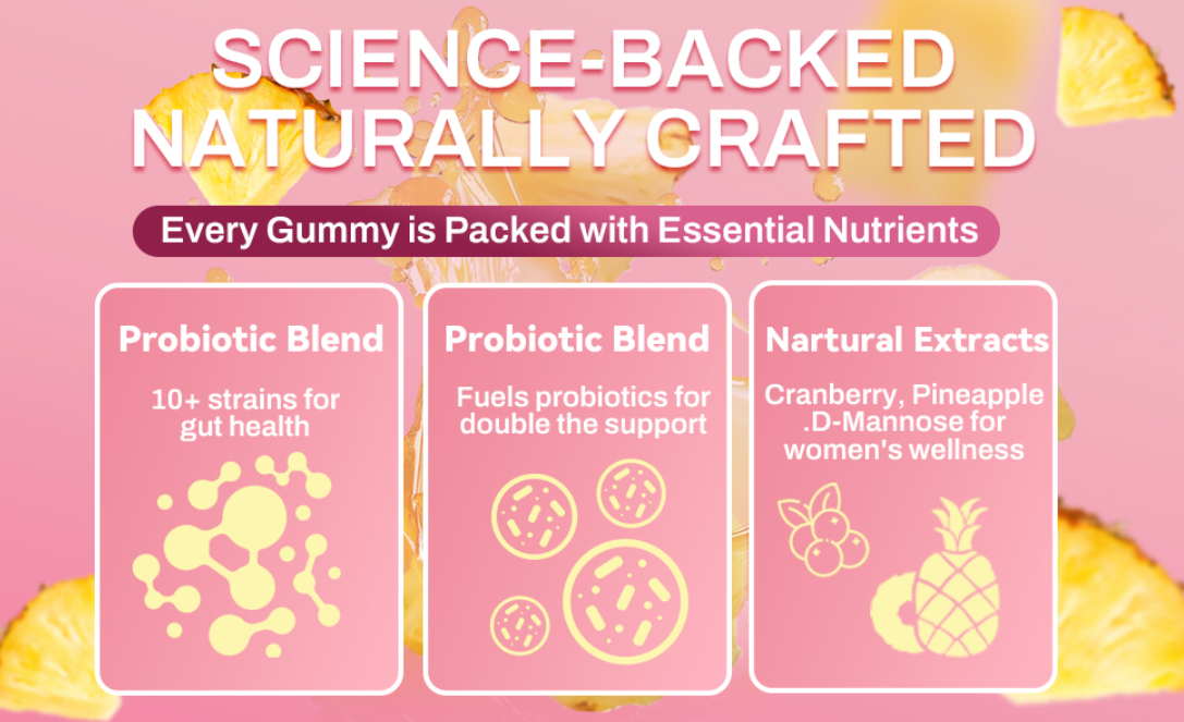 - HAWAIIAN PINEAPPLE GUMMIES FEMININE: Infused with a natural Hawaiian pineapple flavor, these gummies are both refreshing and delicious. Unlike other supplements, these gummies are a treat for the taste buds, making it easier to stay healthy while enjoying a sweet flavor experience