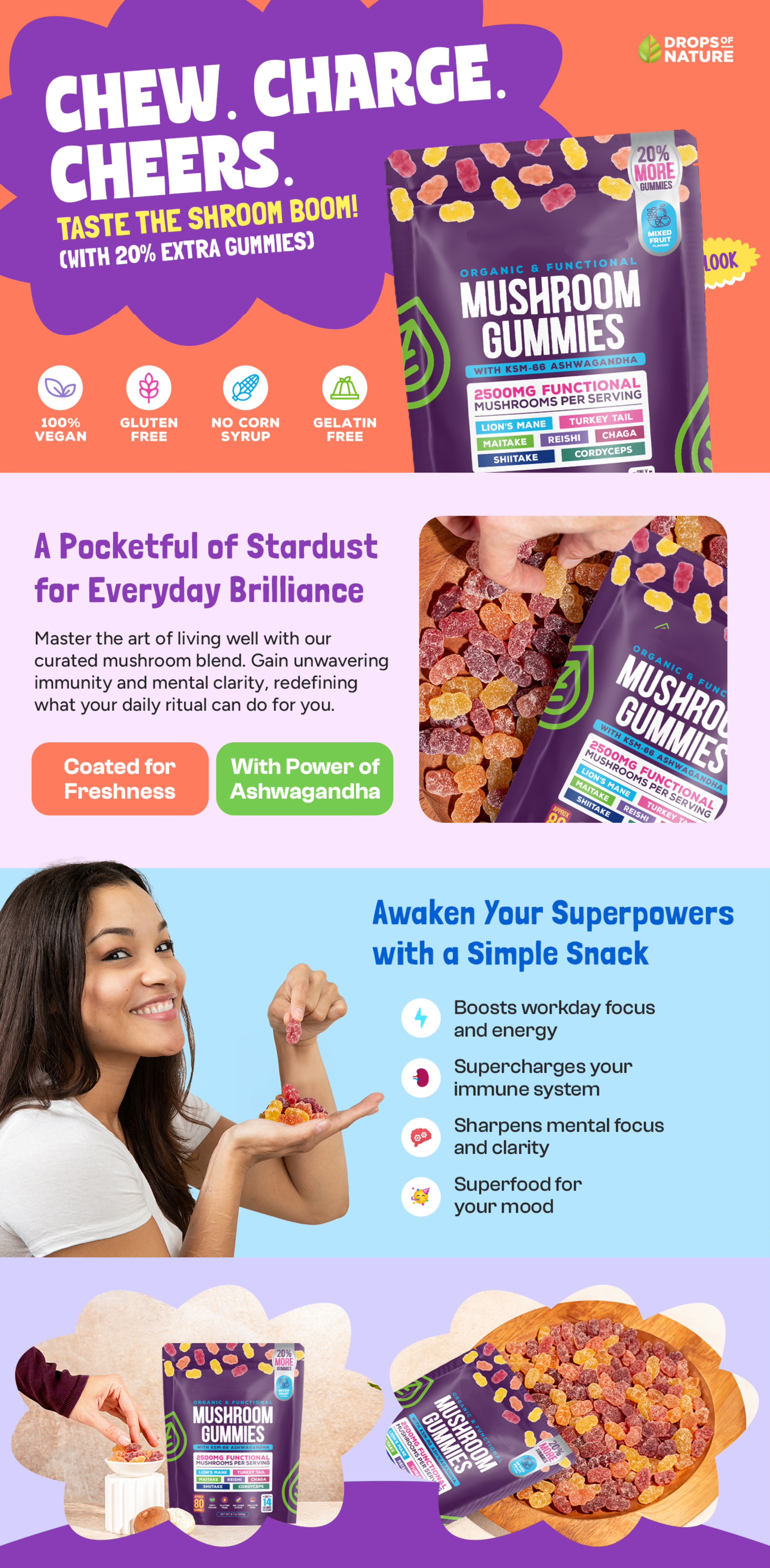- Delicious Berry Flavor: Offers a natural mixed fruit berry flavor; makes daily supplementation enjoyable; convenient and tasty way to incorporate mushrooms and KSM 66 Ashwagandha into your routine; enhances wellness journey with great taste and vital nutrients
