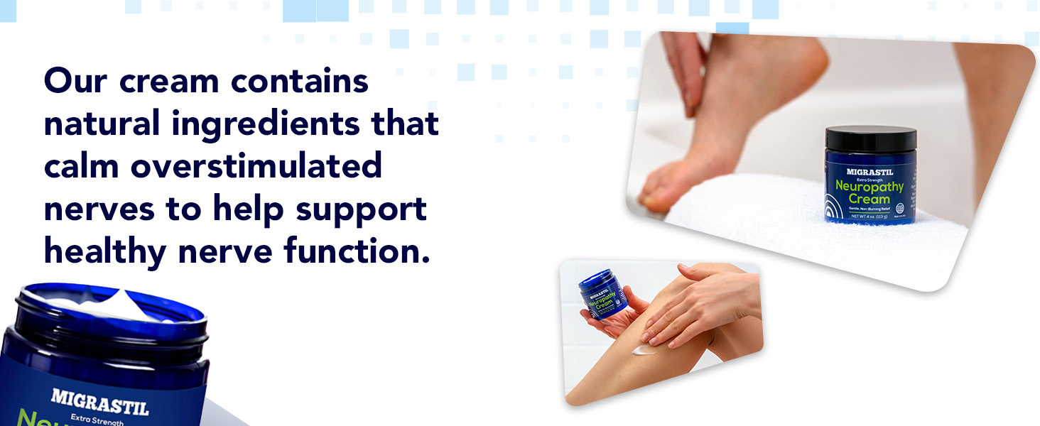 FORMULATED FOR NEUROPATHY: Neuropathy pain is different from everyday muscle and joint pain. Migrastil Extra Strength Neuropathy Cream is specially formulated for people suffering from neuropathy. Our fast-absorbing topical neuropathy cream penetrates your skin in just seconds, providing quick results. The effectiveness of the product increases with consistent usage over time.