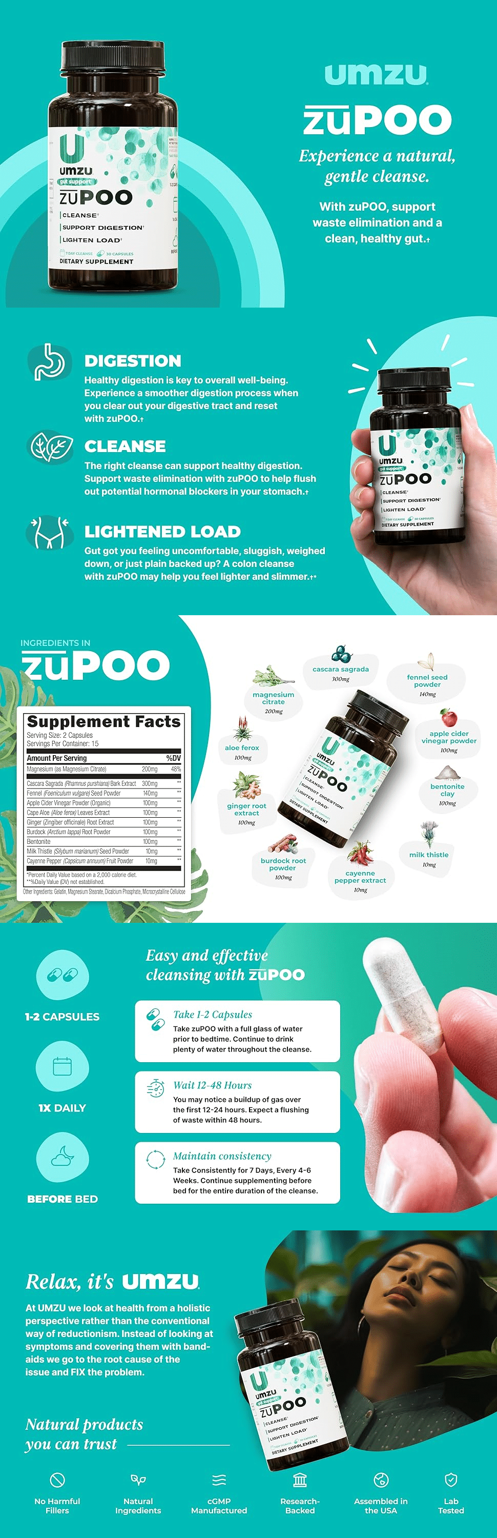 - 7-DAY FLUSH SUPPORT: For a thorough cleanse, take zuPOO capsules daily for 7 days with water before bed to support a full flush of your digestive tract and promote a lightened intestinal load.