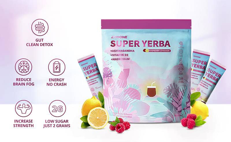 ZOOONE Super Yerba l Yerba Mate Instant Tea Powder IRASPBERRY LEMONADE Flavorl 30 Servings-LY