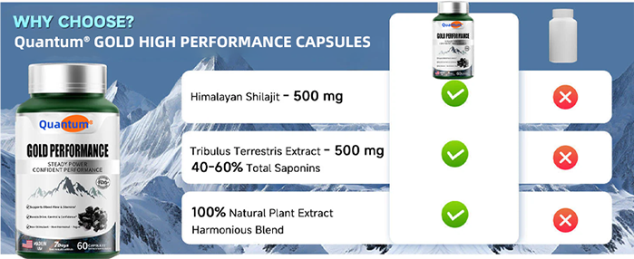 𝑸𝙪𝒂𝙣𝒕𝙪𝒎 Gold Performance Capsules, a premium daily formula designed to: