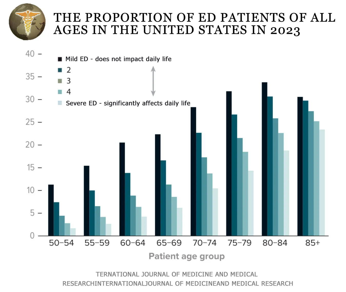 A survey conducted by 'DMW - German Medical Weekly' revealed that in Western countries, over 60% of men aged 30-60 suffer from premature ejaculation (PE) and erectile dysfunction (ED). Moreover, these numbers are on the rise over time. Initially overlooked, this issue worsens with time and may lead to the loss of valuable sexual function.