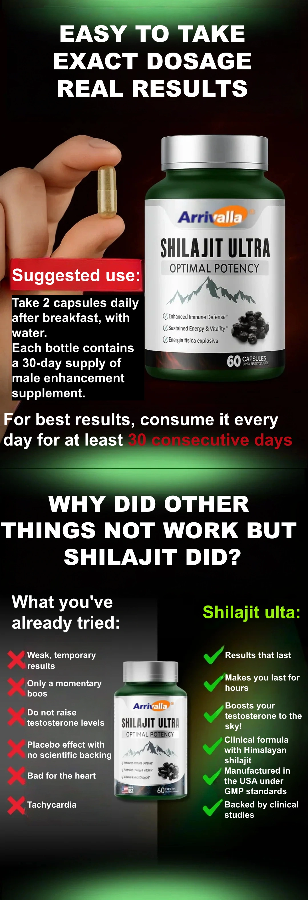 For centuries, Shilajit was considered the secret of Himalayan warriors. Today, its modern version offers you the same benefits: strength, virility, sustained energy, and improved sexual function without chemicals or side effects.